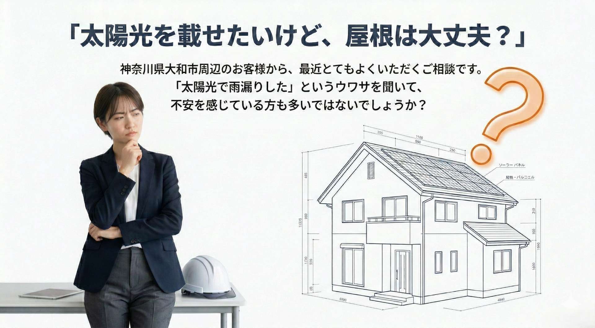 今回は、大和市で実際にあった事例を交えながら、太陽光設置による屋根へのダメージや、将来必ず発生する「脱着費用」の現実についてお話しします。