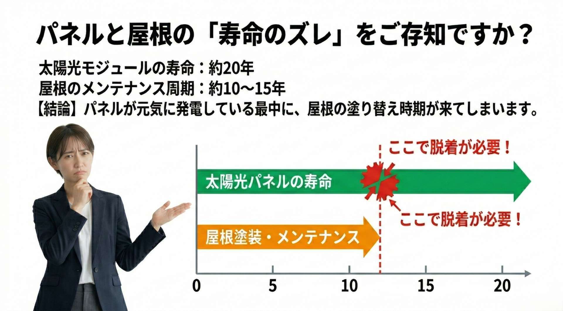 パネルと屋根の「寿命のズレ」が引き起こす問題