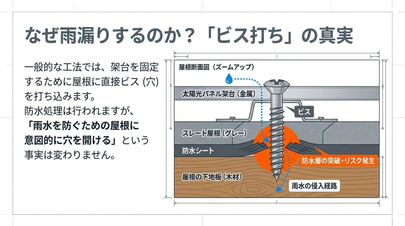しかし、「屋根に穴を開ける」という事実は変わりません。