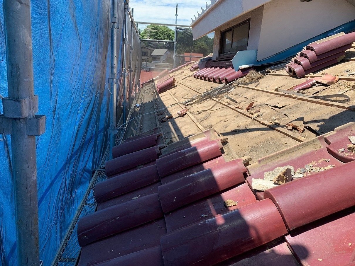 これまでの屋根を撤去して新しい屋根に葺き替える工事です。最近は老朽化した屋根だけじゃなく、耐震性の面から軽い金属屋根に葺き替える方も増えています。